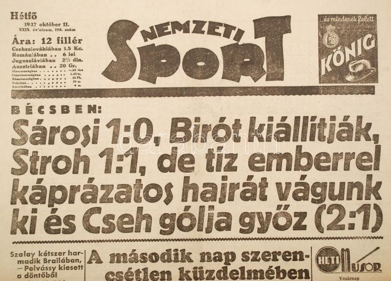 1937 Nemzeti Sport okt. 11-i száma sok érdekes cikkel, kissé szakadozo... https://www.darabanth.com/de/256-Fernauktion/256.0/Andere-Sammelgebiete/Drucksachen~26/1937-Nemzeti-Sport-okt-11-i-szama-sok-erdekes-cikkel-kisse-szakadozott-szelekkel-pp16-47x3~II1255283