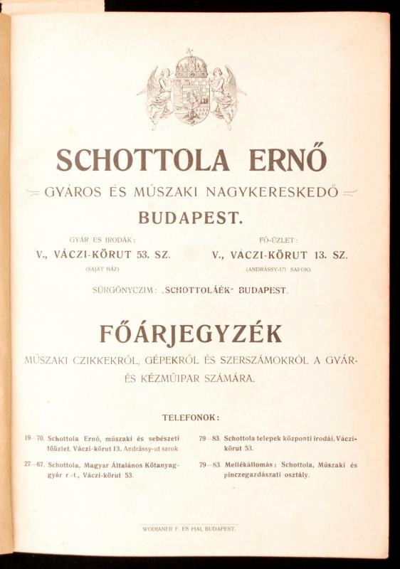 cca 1900 Schottola E.: Műszaki árjegyzéke sok-sok képpel illusztrálva,... https://www.darabanth.com/de/256-Fernauktion/256.0/Andere-Sammelgebiete/Drucksachen~26/cca-1900-Schottola-E-Muszaki-arjegyzeke-sok-sok-keppel-illusztralva-magyar-nemet-nyelvu-p~II1256531