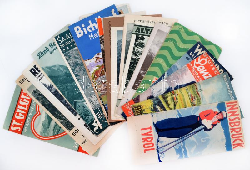 Beschreibung: cca 1910-40 Különböző osztrák és német turisztikai prospektusok, vegyes méretben és minőségben, 20db