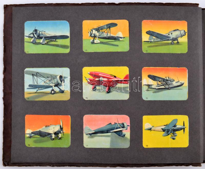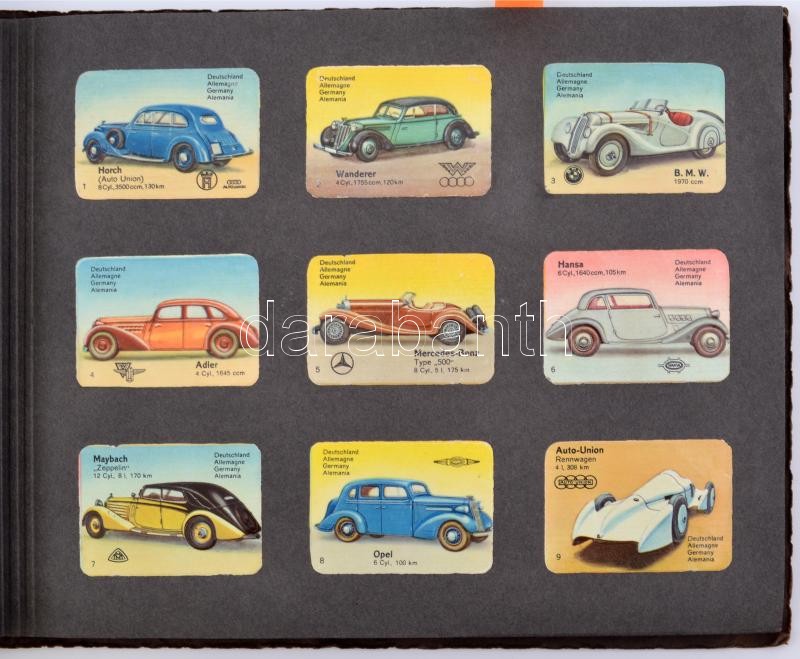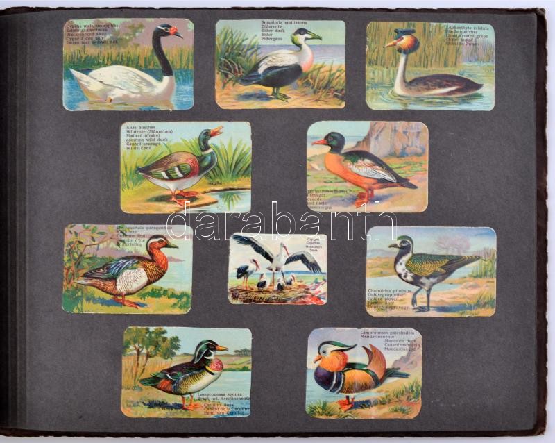 cca 1930 Litho gyűjtőképekből szépen összeállított mappa. Összesen kb 240 kép különböző témákban: autók, repülők, madarak, állatok / 240 Litho colleting cards with different topics. Cars. planes, animals