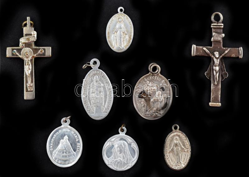 Beschreibung: Régi, apró kegytárgyak, feszületek, az egyik fa betétes, mindkettő korpusszal,kis medálok, 8db