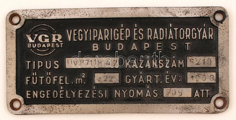 Vegyiparigép és Radiátorgyár Budapest gőzkazán gyártási tábla, 10x22 c... https://www.darabanth.com/de/256-Fernauktion/256.0/Andere-Sammelgebiete/Flohmarkt~10/Vegyiparigep-es-Radiatorgyar-Budapest-gozkazan-gyartasi-tabla-10x22-cm~II1256496