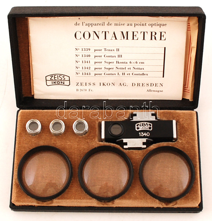Zeiss Ikon Contametre, távolságmérő?, hiánytalan készlet eredeti doboz... https://www.darabanth.com/de/256-Fernauktion/256.0/Andere-Sammelgebiete/Fotoapparaten-Kameras-Zubehor~9/Zeiss-Ikon-Contametre-tavolsagmero-hianytalan-keszlet-eredeti-dobozban-francia-nyelvu-leC3~II1253219