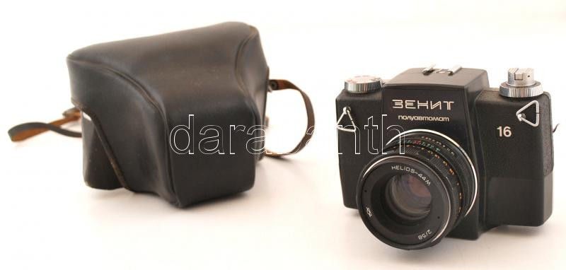 Zenit 16 fényképezőgép Helios 44-M objektívvel, kissé szakadt tokban https://www.darabanth.com/de/256-Fernauktion/256.0/Andere-Sammelgebiete/Fotoapparaten-Kameras-Zubehor~9/Zenit-16-fenykepezogep-Helios-44-M-objektivvel-kisse-szakadt-tokban~II1251334