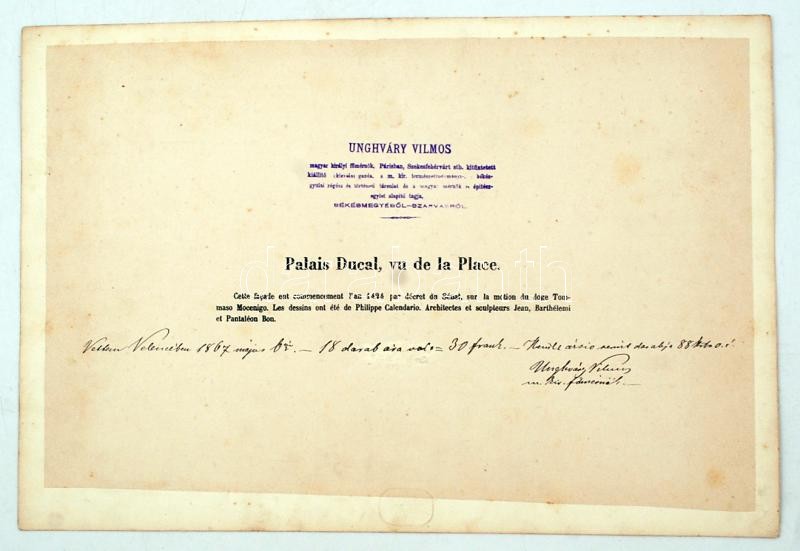 1867 Carlo Ponti felvétele Velencéről, Unghváry Vilmos m. kir. főmérnök gyűjteményéből, feliratozott, kartonra ragasztott fénykép, 25x35 cm, karton 30x44 cm /