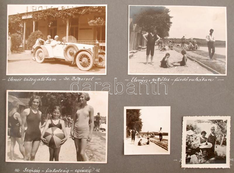 1933-34 Torday Dezső családi fotóalbum rengeteg szép, feliratozott képpel albumba ragasztva, helytörténeti szempontból is rendkivül érdekesek (Gödöllő, Révfülöp, Pálköve, Kapolcs, Siofok, Veszprém, Mátra, Mogyoród, ect.)több száz különböző méretű fényképpel