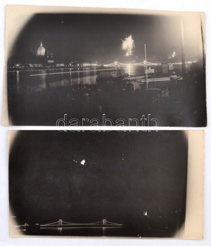 Beschreibung: 1938 Budapest, Eucharisztikus Kongresszus esti parádéja, 6db fotó, cca 10x15cm