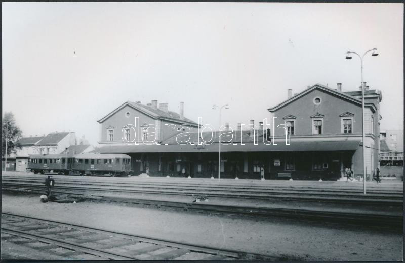 Beschreibung: Linzbauer Tamás: Sopron, vasútállomás, pecséttel jelzett, feliratozott fotó, 9x14 cm