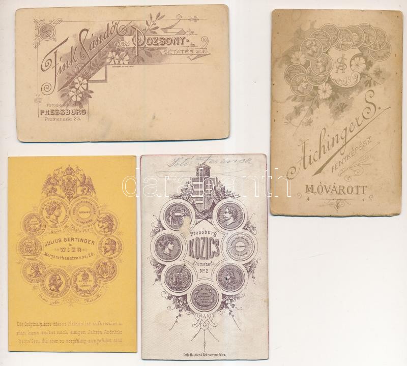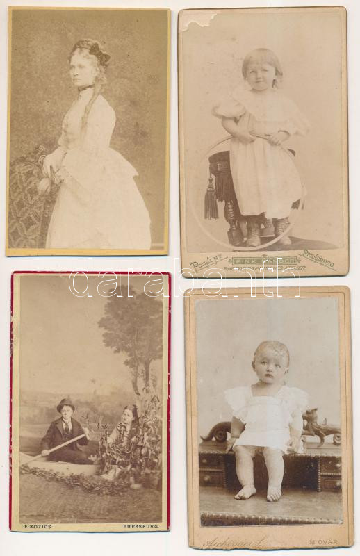 Beschreibung: cca 1860-90 Korabeli keményhátú fotók, 4db, különböző műtermekből: Gertinger, Kozics, Fink, Aihingers, cca 10x6cm
