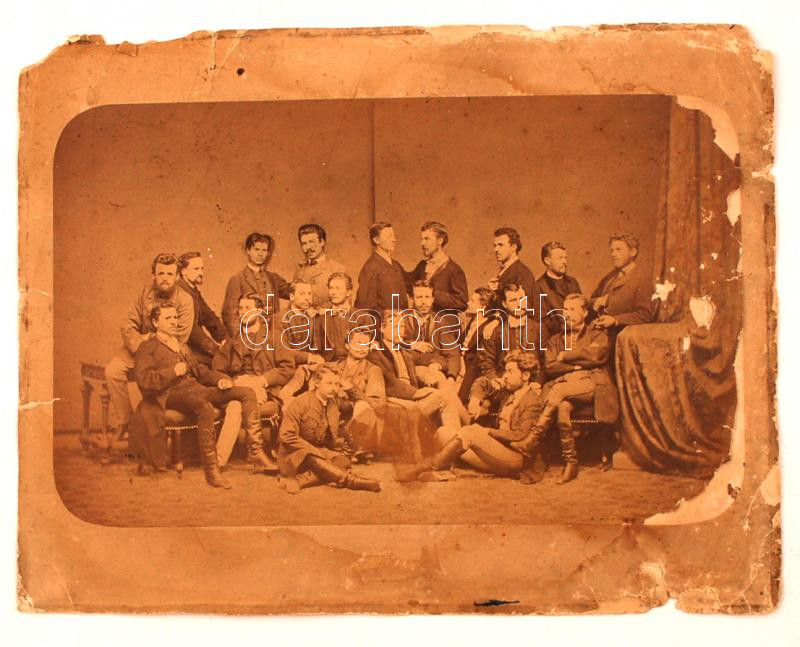 Beschreibung: cca 1865 Gévay Béla pesti műtermében készült, korai, nagyméretű csoportkép, restaurálást igényel, 29x37 cm, karton (sérült) 32x42 cm