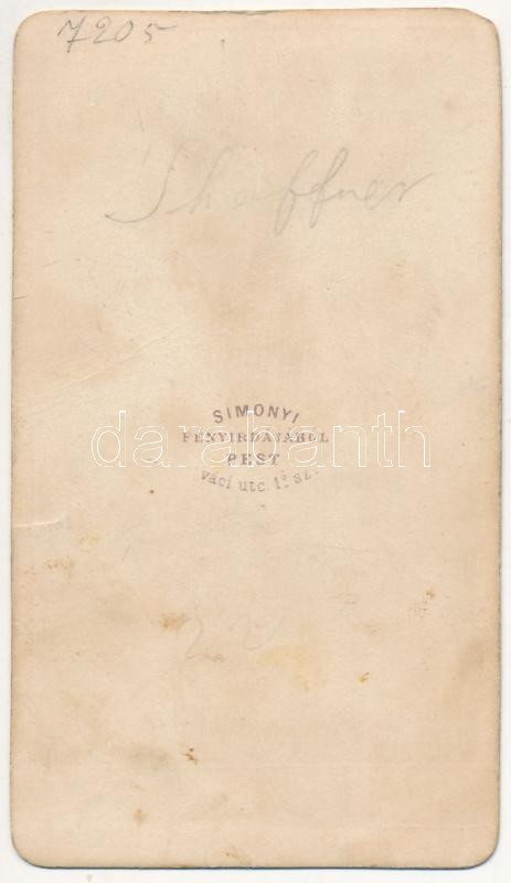cca 1865 Shaffner feliratú vizitkártya Simonyi pesti fényirdájából, ez... https://www.darabanth.com/de/256-Fernauktion/256.0/Andere-Sammelgebiete/Foto~18/cca-1865-Shaffner-feliratu-vizitkartya-Simonyi-pesti-fenyirdajabol-ez-a-muterem-7205-os-szC3~II1250602