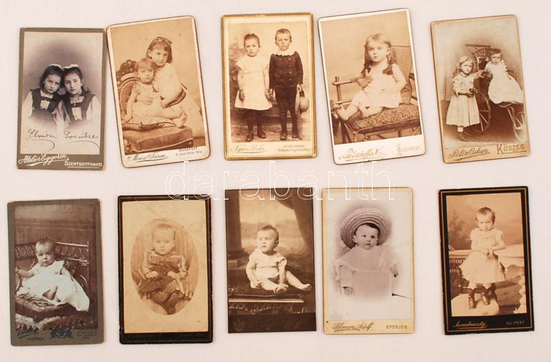 cca 1900 Különböző keményhátú kabinetfotó gyermekekről magyar és külföldi műtermekből benne Mai Manó fotó is, 10db, vegyes méretben és minőségben, cca 10x6cm