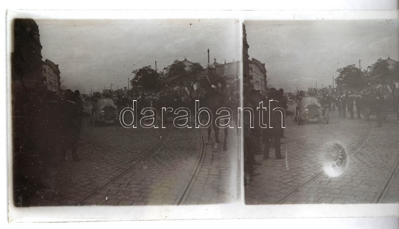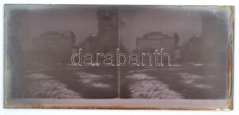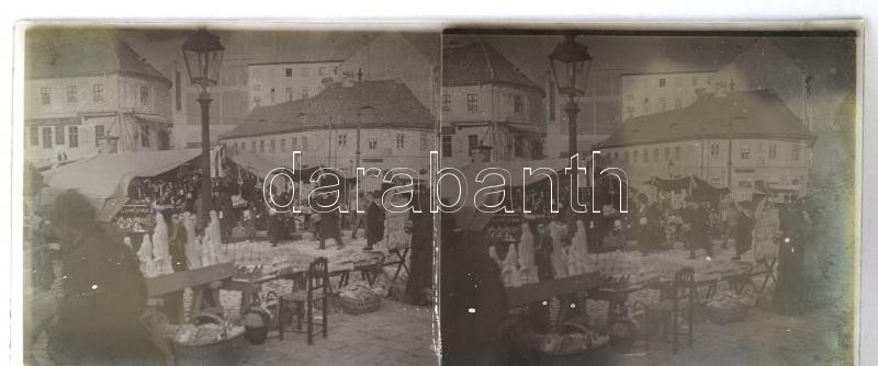 Beschreibung: cca 1920 Budapesti városképek, piacok, 13 db sztereo üveglemez diapozitív képpár, 6x13 cm