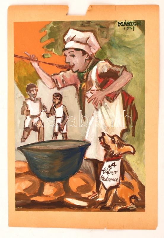 Márton Lajos (1891-1953): Cserkész életképek: Tábori koszt, vegyes tec... https://www.darabanth.com/de/256-Fernauktion/256.0/Andere-Sammelgebiete/Gemalde-und-Grafiken~1/Marton-Lajos-1891-1953-Cserkesz-eletkepek-Tabori-koszt-vegyes-technika-papir-jelzett-2~II1241197