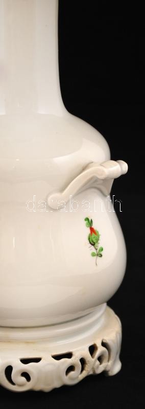 Beschreibung: Herendi virágmintás ernyős lámpa, kézzel festett, jelzett, kis kopásnyomokkal, a talpán festéknyomokkal, m: 45 cm