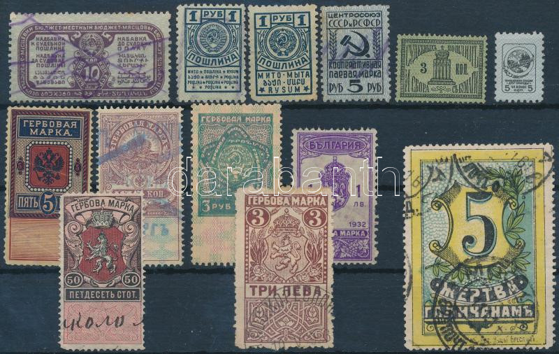 Beschreibung: 13 db orosz és bulgár régi okmánybélyeg