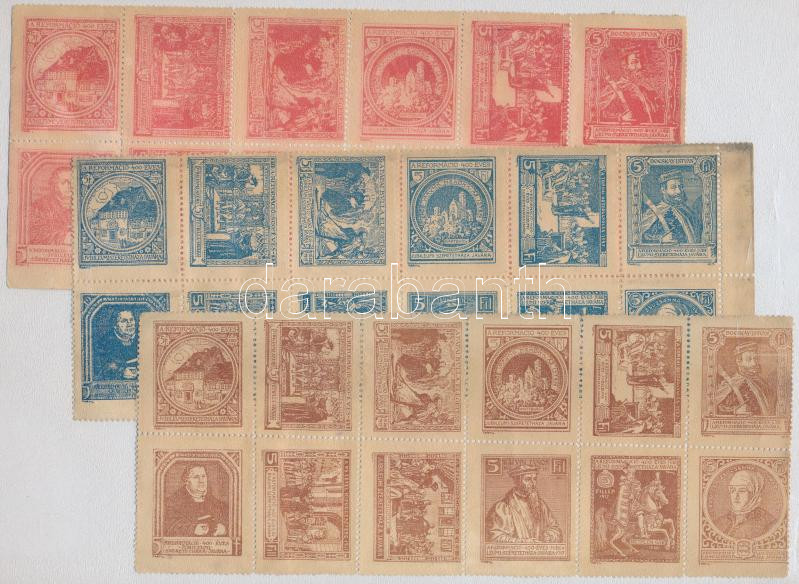 Beschreibung: 1917 "A reformáció 400 éves" jubileumi levélzáró 12-es tömbökben 3 színben