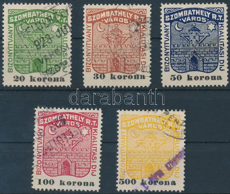 Beschreibung: 1922 Szombathely városi 20K, 30K, 50K, 100K, 500K teljes sor illetékbélyeg (61.500)