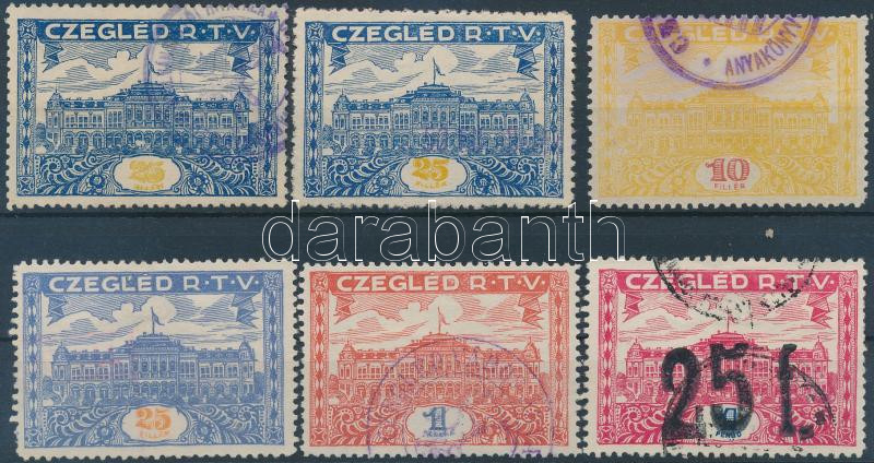 Beschreibung: 1925/1932 Ceglédi városi illetékbélyeg teljes sor színváltozatokkal + 25f felülnyomással (19.500)