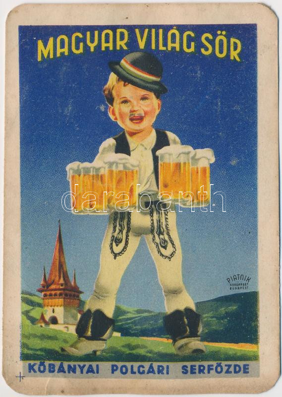 Beschreibung: 1943 "Magyar Világ Sör" Kőbányai Polgári Serfőzde kártyanaptára(Piatnik Budapest)