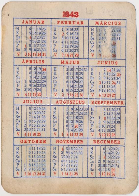 1943 "Magyar Világ Sör" Kőbányai Polgári Serfőzde kártyanaptára(Piatni... https://www.darabanth.com/de/256-Fernauktion/256.0/Andere-Sammelgebiete/Werbungen~19/1943-Magyar-Vilag-Sor-Kobanyai-Polgari-Serfozde-kartyanaptaraPiatnik-Budapest~II1256208