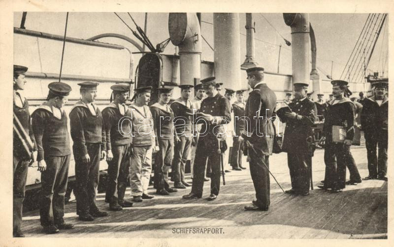 1914 Pola 'Schiffs-Rapport' Phot. Alois Beer / inspection on the ship,... https://www.darabanth.com/de/256-Fernauktion/256.0/Ansichtskarten/Kriegsschiffe~400056/1914-Pola-Schiffs-Rapport-Phot-Alois-Beer-inspection-on-the-ship-KuK-mariners~II1253794