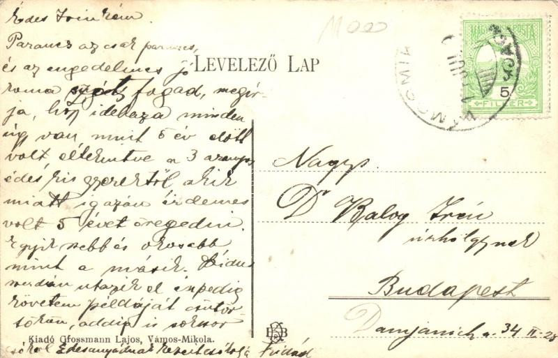 Beschreibung: Vámosmikola, Pálfi Pál és Groszman Lajos üzlete; kiadja Groszman Lajos (EK)