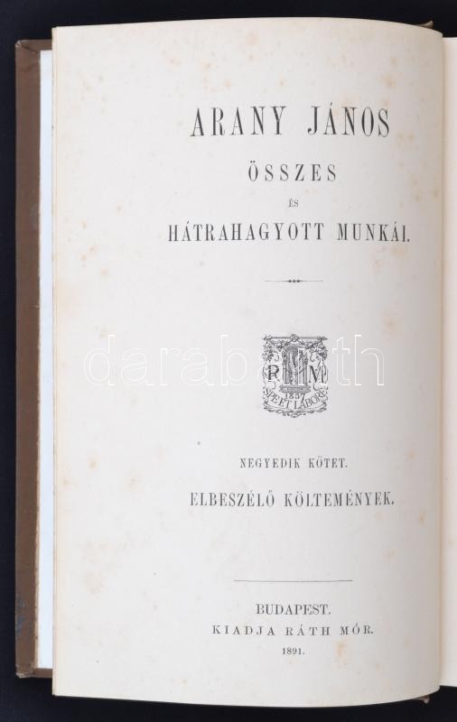 Arany János összes munkái. III. kötet. Bp., 1891, Ráth Mór. Kiadói, festett, aranyozott egészvászon kötésben, aranyozott lapszélekkel. Szép állapotban.