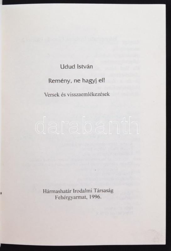 Udud István: Remény, ne hagyj el! Versek és visszaemlékezések. Fehérgyarmat, 1996,