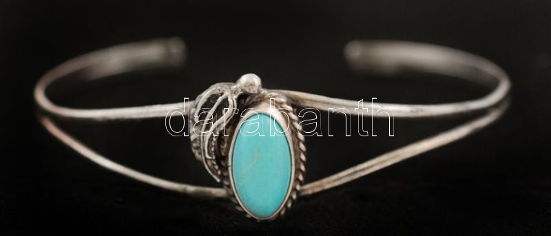 Ezüst karkötő türkizszínű gyönggyel, Ag., br.: 4,6gr., jelzés nélkül/S... https://www.darabanth.com/de/256-Fernauktion/256.0/Juwelen/Juwelen~600365/Ezust-karkoto-turkizszinu-gyonggyel-Ag-br-4-6gr-jelzes-nelkulSilver-bracelet-with-~II1252443