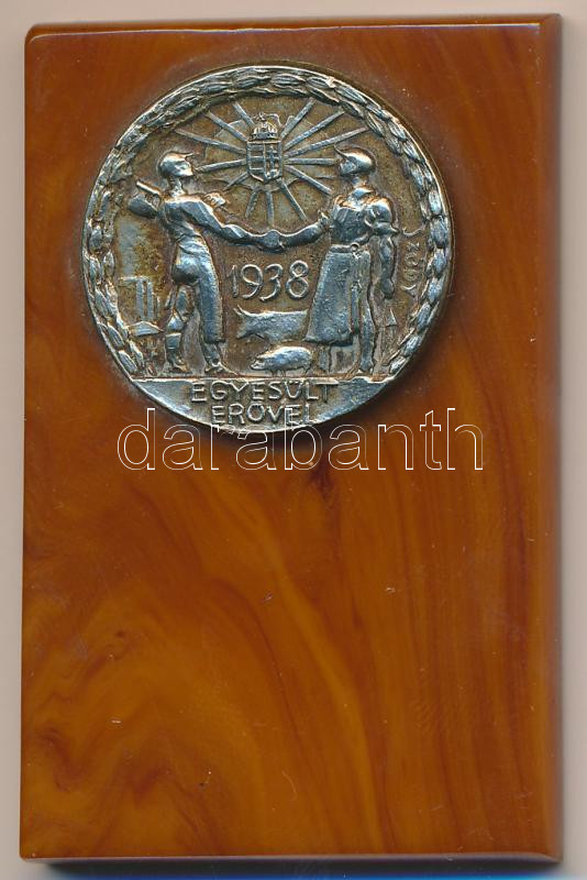 Beschreibung: Sződy Szilárd (1878-1939) 1938. "Egyesült erővel" ezüstözött Br jelvény (25mm) talpon (56x36mm) T:2