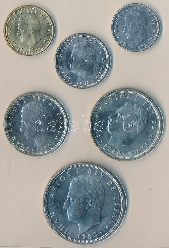 Spain 1980. "World Cup soccer games 1982" 50 Centimos - 100 Pesetas (6xdiff) coin set in case C:UNC