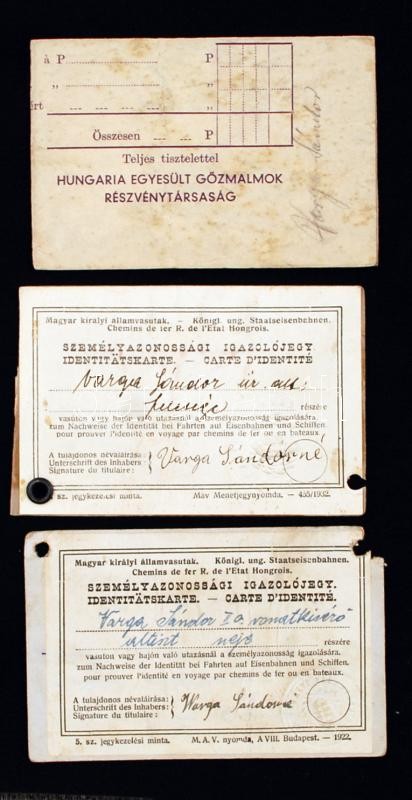 Beschreibung: 1927 Magyar királyi államvasutak fényképes igazolványa altiszt és családtagja részére 3 db