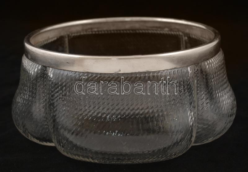 Beschreibung: Dekoratív üveg tál ezüstözött peremmel, hibátlan, d:17 cm, m:9 cm