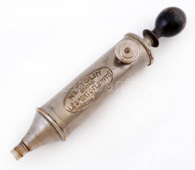 Régi fém légfertőtlenítő, "Nettolin szabad légfertőtlenítő Bpest, VI" ... https://www.darabanth.com/de/257-Fernauktion/257.0/Andere-Sammelgebiete/Flohmarkt~10/Regi-fem-legfertotlenito-Nettolin-szabad-legfertotlenito-Bpest-VI-felirattal-h-24-5-~II1259430