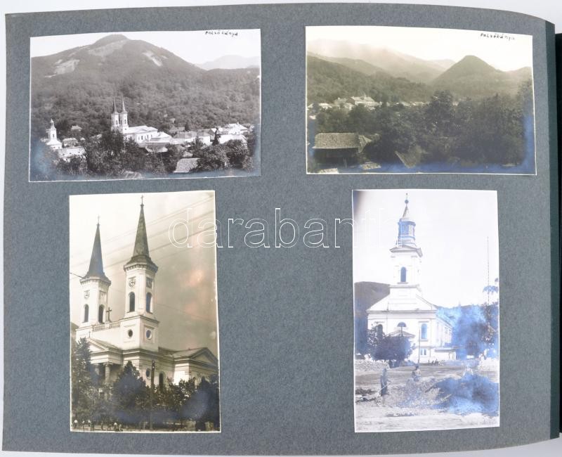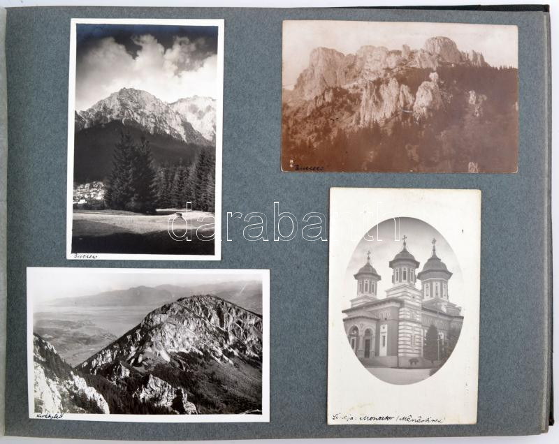 Kb 200 fényképet tartalmazó fotóalbum, benne néhány magyar és erdélyi kép és képeslap, valamint Olaszország. Feliratozott képek igényes, nagy fényképalbumban / Nearly 200 photos mostly Hungary, Transylvania, Italy in large album