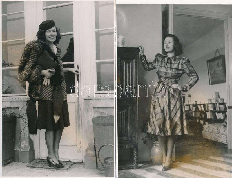 cca 1940 Muráti Lili (1912-2003) színésznő az otthonában, Rozgonyi felvételei, a képeken barnás elszíneződés, 2 db pecséttel jelzett fotó, 17,5x11,5 cm