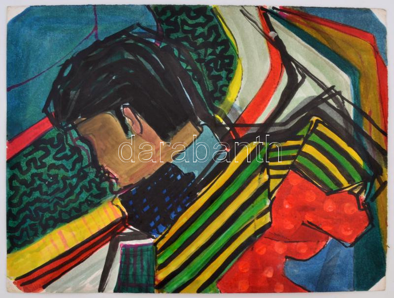 Beschreibung: Jelzés nélkül: Színes fantáziák, akvarell, papír, cca 34x25cm