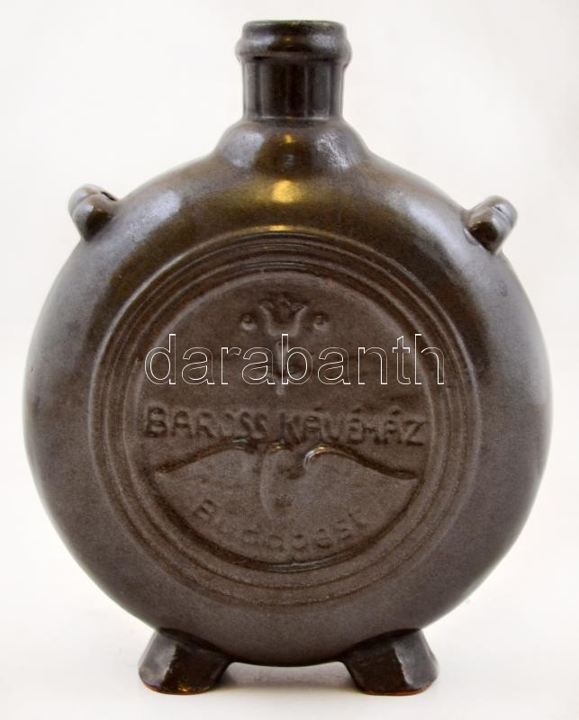 Beschreibung: Koncz irredenta (cca 1930) kulacs, kézzel festett mázas kerámia, jelzett, hibátlan, "Hiszek Magyarország feltámadásában" és " Baross Kávéház Budapest" felirattal, m:18,5 cm
