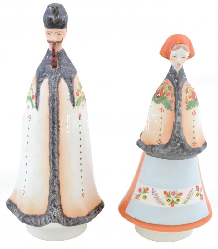 Beschreibung: Aquincumi népvisletes pár, kézzel festett, jelzett, hibátlan, m:20 és 22 cm