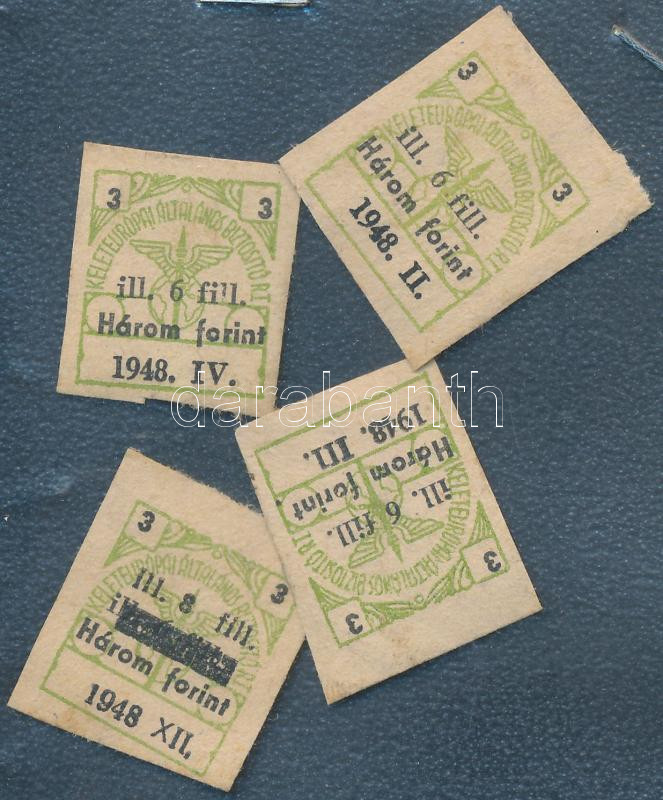 1948 Keleteurópai általános biztosító fizetési bélyeg, 4 db https://www.darabanth.com/de/257-Fernauktion/257.0/Andere-Sammelgebiete/Stempelmarken~15/1948-Keleteuropai-altalanos-biztosito-fizetesi-belyeg-4-db~II1261063