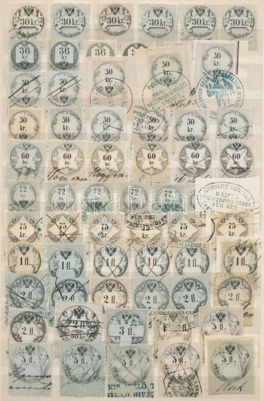 Beschreibung: 62 db régi okmánybélyeg közte kivágások