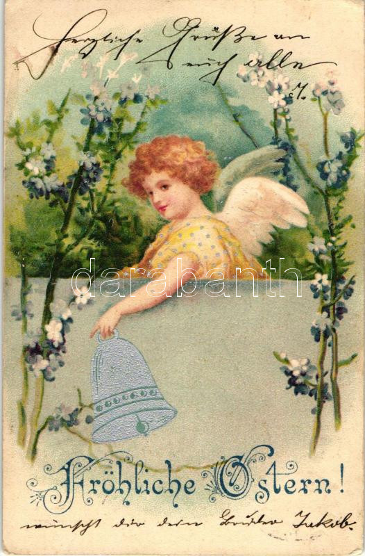 Easter, angel, bell, floral litho (EK) https://www.darabanth.com/de/257-Fernauktion/257.0/Ansichtskarten/GruC39Fkarten-Feste~400092/Easter-angel-bell-floral-litho-EK~II1240372