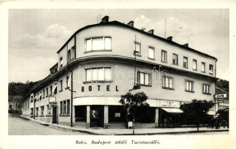 Rahó, Rakhiv; Budapest Turistaszálló, étterem, dohánybolt, kiadja Feig... https://www.darabanth.com/de/257-Fernauktion/257.0/Ansichtskarten/Karpatenukraine~400014/Raho-Rakhiv-Budapest-Turistaszallo-etterem-dohanybolt-kiadja-Feig-Bernat-Hotel-Budapest~II1258959