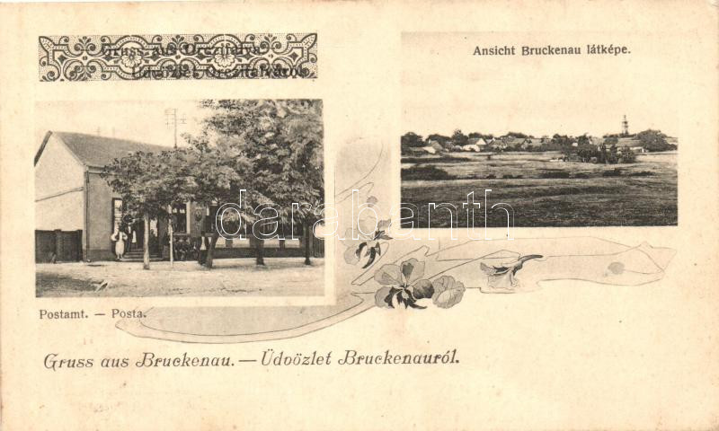 Beschreibung: Hidasliget, Pischia, Bruckenau; Posta, látkép, kiadja Dajkovits J. utóda / view, post office, floral