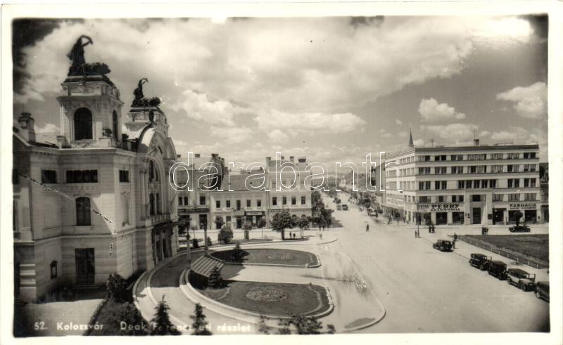 Kolozsvár, Cluj; Deák Ferenc út, gyógyszertár, Perry autószalon, Dombi... https://www.darabanth.com/de/257-Fernauktion/257.0/Ansichtskarten/Siebenburgen~400009/Kolozsvar-Cluj-Deak-Ferenc-ut-gyogyszertar-Perry-autoszalon-Dombi-es-St-Penes-uzlete-~II1259293