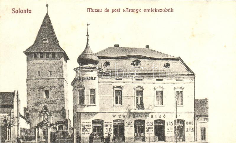 Nagyszalonta, Salonta; Arany emlékszoba, Wessely és Bíró kereskedése. ... https://www.darabanth.com/de/257-Fernauktion/257.0/Ansichtskarten/Siebenburgen~400009/Nagyszalonta-Salonta-Arany-emlekszoba-Wessely-es-Biro-kereskedese-Dome-Karoly-konyvkeres~II1260217
