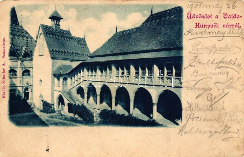 Beschreibung: Vajdahunyad, Huedin; várudvar, kiadja Schuller A. / castle courtyard (EB)
