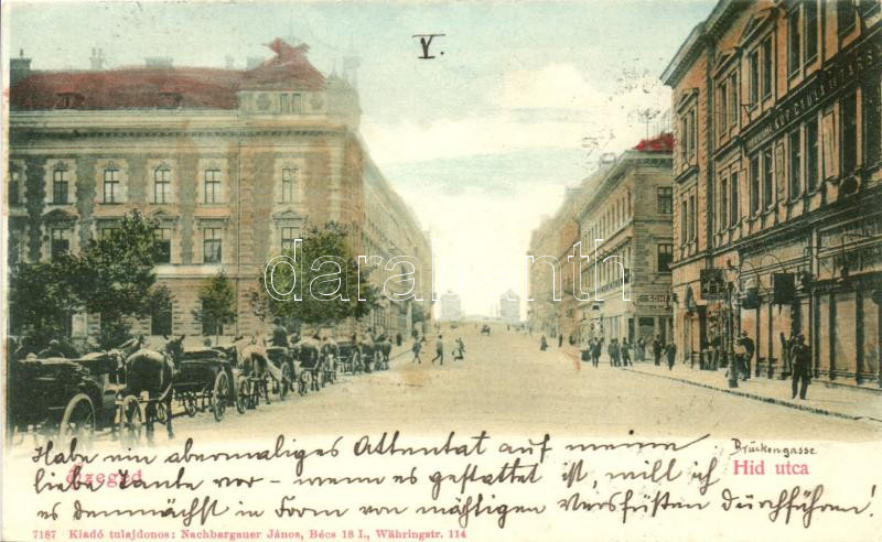 1899 Szeged, Híd utca, Kúp Gyula és társa kereskedése; kiadja Nachbarg... https://www.darabanth.com/de/257-Fernauktion/257.0/Ansichtskarten/Ungarn~400010/1899-Szeged-Hid-utca-Kup-Gyula-es-tarsa-kereskedese-kiadja-Nachbargauer-Janos~II1261412