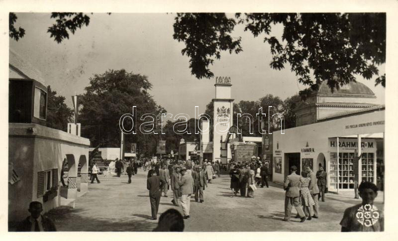 Beschreibung: 1942 Budapest, Nemzetközi Vásár, Háborús Vásár, H. Rahmer M. és Stühmer pavilonja, So. Stpl